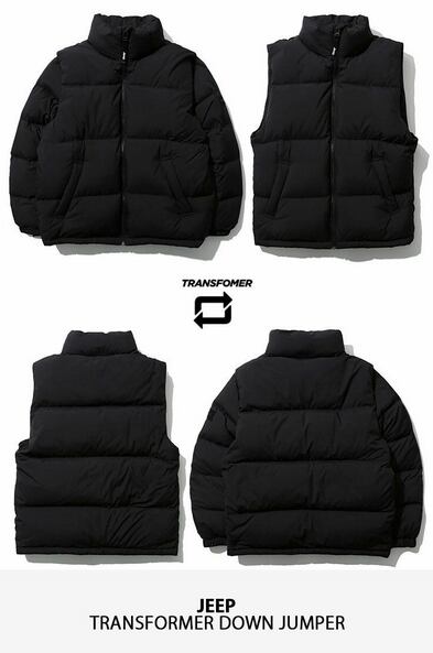 商品名 :【新品/未使用】Jeep TRANSFOMER DOWN JUMPER BLACK ジープ トランスフォーマー ダウン ジャンパー GL4JPU451BK メンズ レディース ジャケット ダウンジャケット ダウンベスト 2in1
