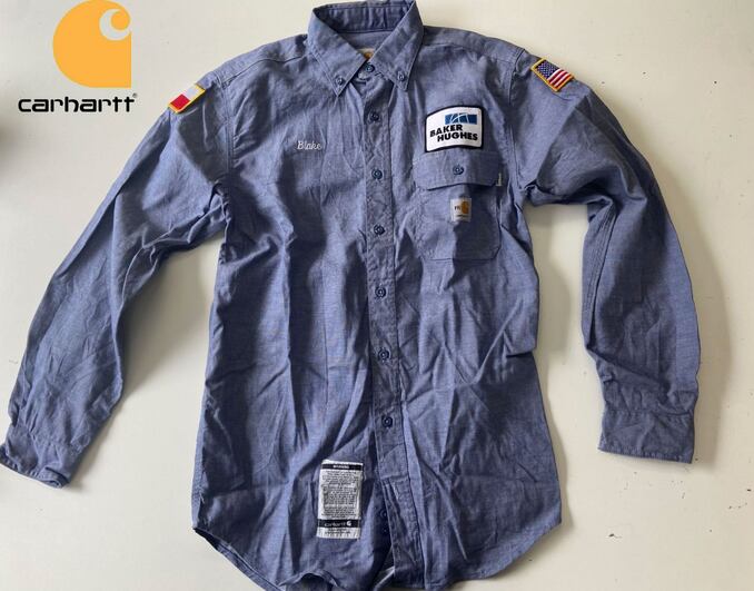 古着 シャツ carhartt カーハート デニムワークシャツ サイズ S - R ワッペン