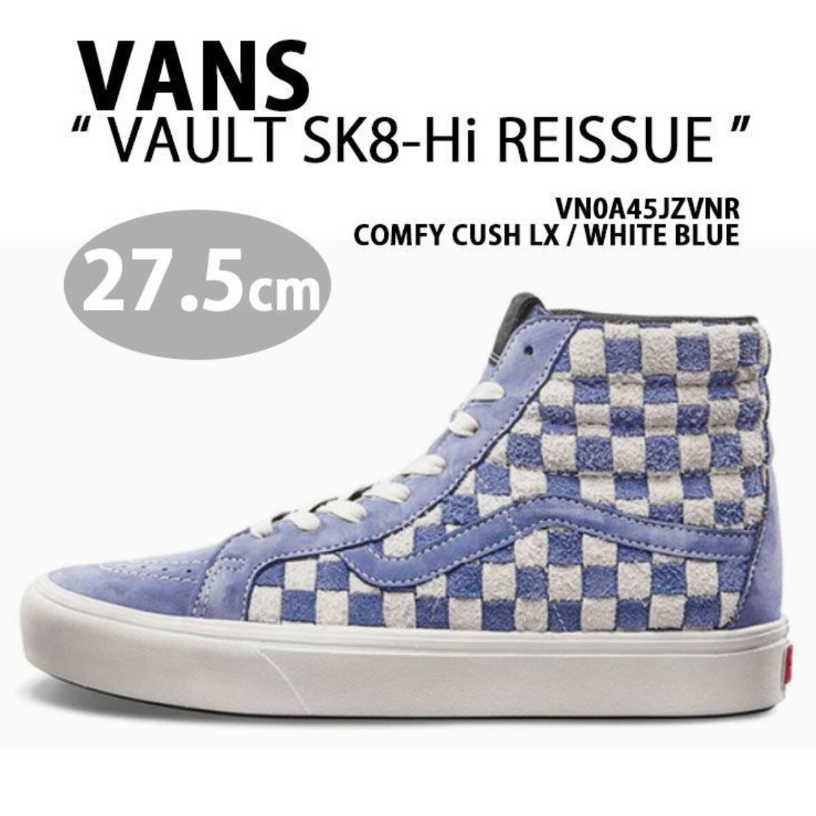 商品名 :【新品/未使用】【27.5cm】VANS VAULT Comfycush Sk8-Hi Reissue LX WHITE BLUE VN0A45JZVNR スケートハイ リシュー チェッカーボード ホワイトブルー コンフィークッシュ