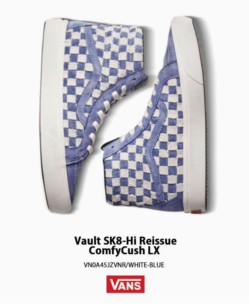 【新品/未使用】【27.5cm】VANS VAULT Comfycush Sk8-Hi Reissue LX WHITE BLUE VN0A45JZVNR スケートハイ リシュー チェッカーボード ホワイトブルー コンフィークッシュ