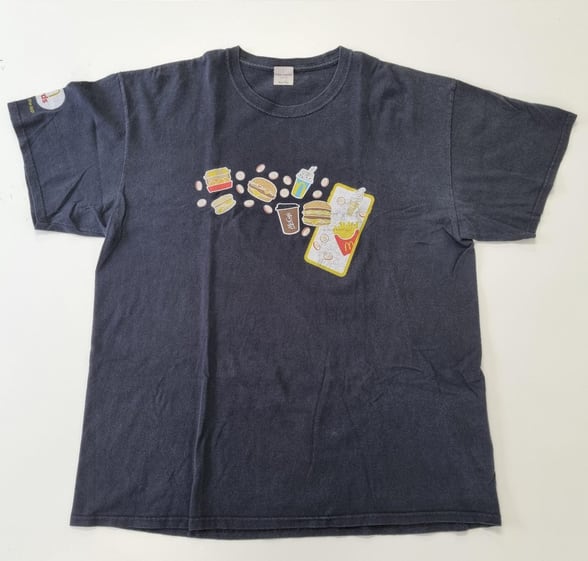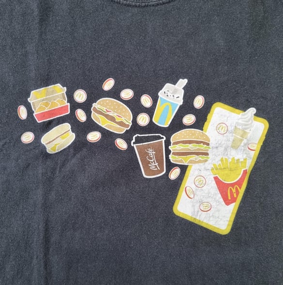 商品名 :【日本未発売】ヴィンテージ 古着 マクドナルド Tシャツ マクドTシャツ 半袖 アメリカ製 USA 企業 ロゴ ハンバーガー フェード 大きい サイズ XL BLACK ブラッ