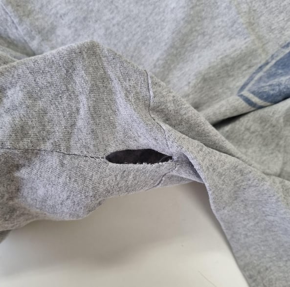 ※ 両脇の部分に穴があり、服の前面にはプリントの色移りがあります。