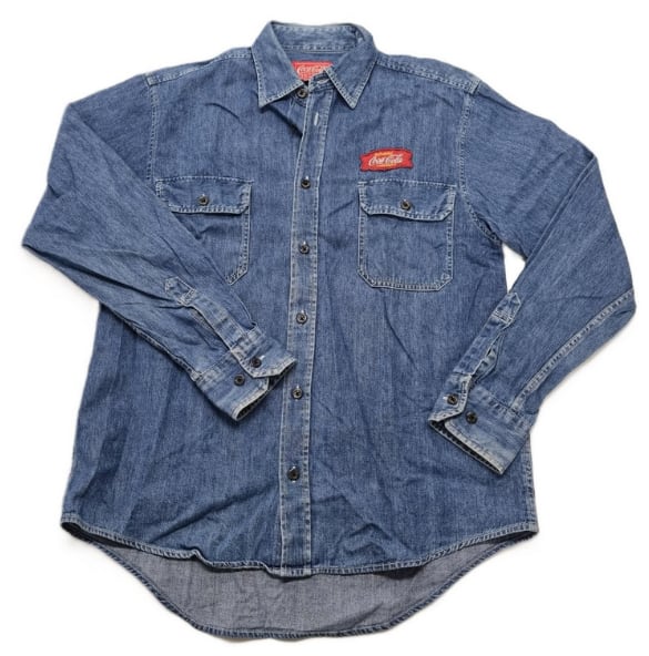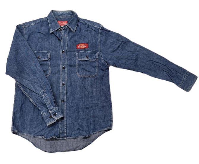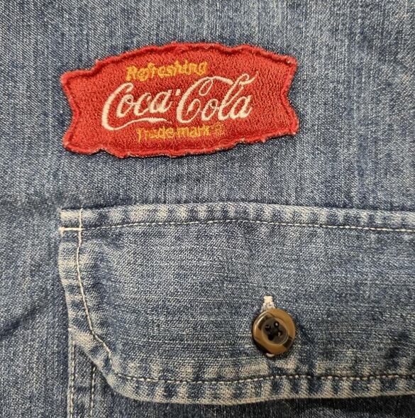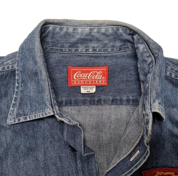 ヴィンテージ 古着 コカ・コーラ シャツ デニム Coca Cola アメリカ製 USA Mサイズ 90s 00s シャツ ワッペン 企業ロゴ フェード