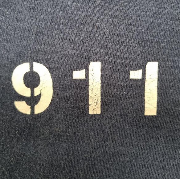 商品名 :ヴィンテージ 古着 Tシャツ 911 USA TEE 半袖 アメリカ製 Lサイズ NAVY ネイビー 911 消防 番号 プリントTシャツ 90s 00s フェード